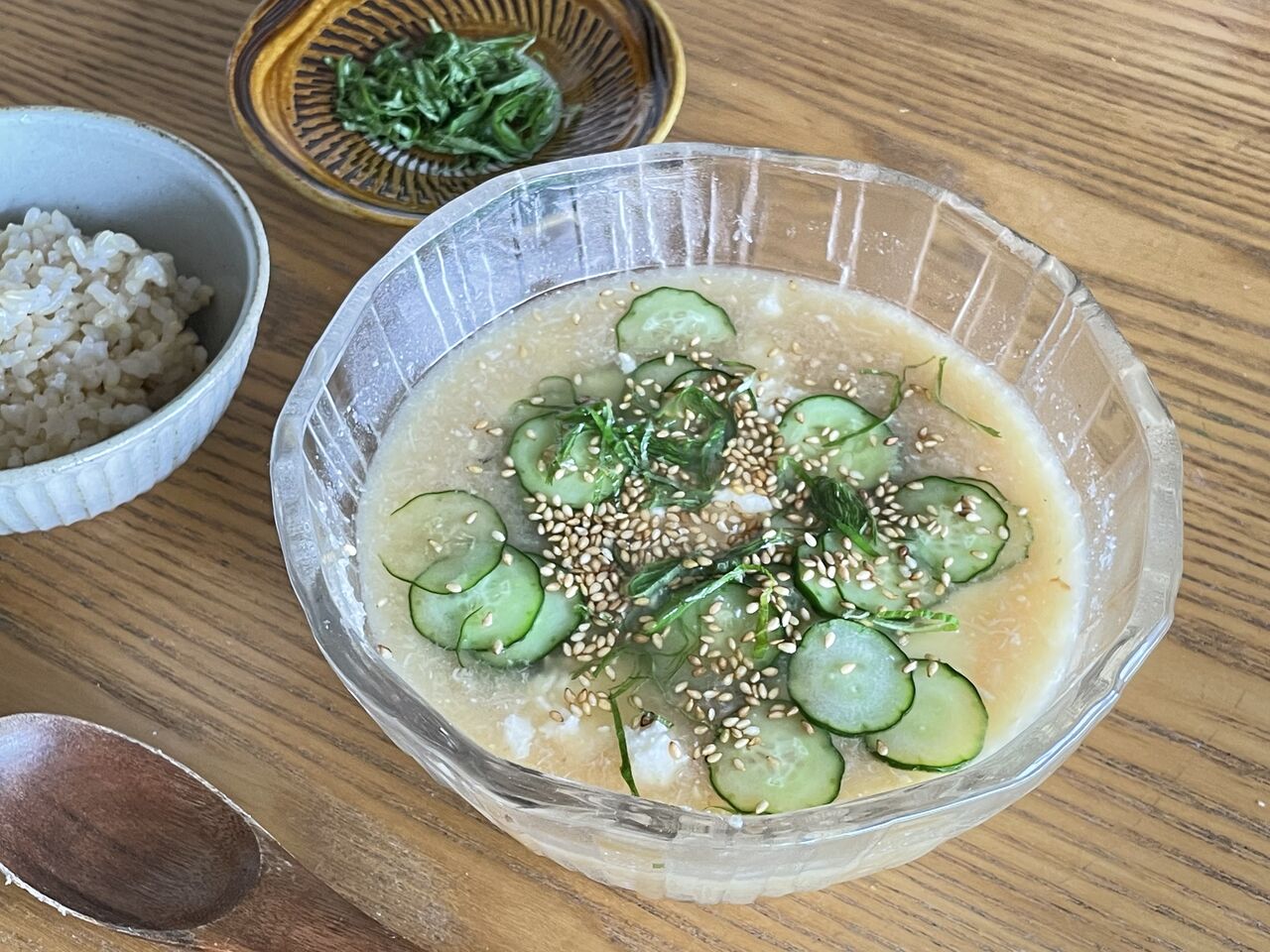 「乾きを癒して疲労回復に食べたい玄米薬膳冷や汁」です。