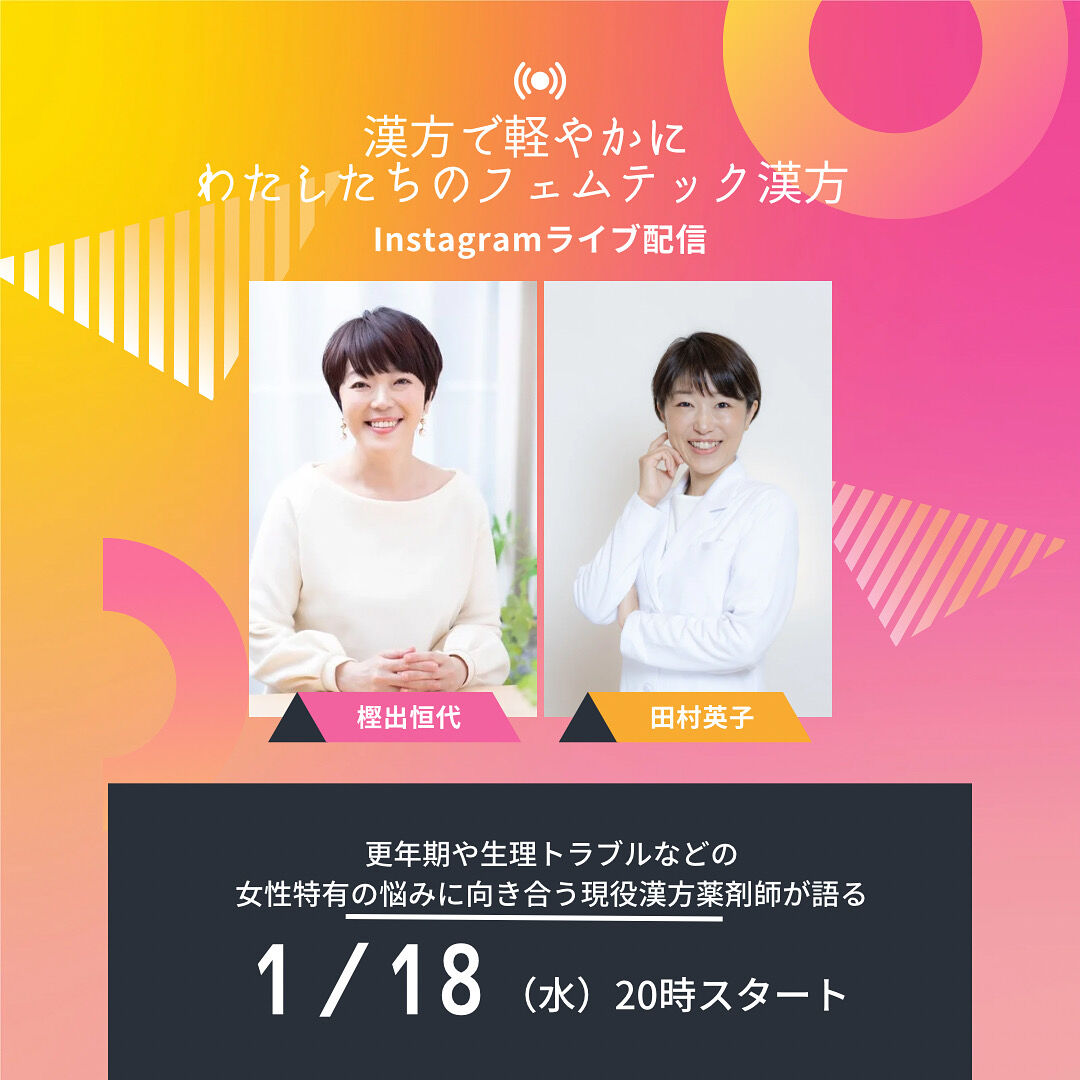 などなどインスタライブで、漢方の臨床に当たる薬剤師二人がお話しします。