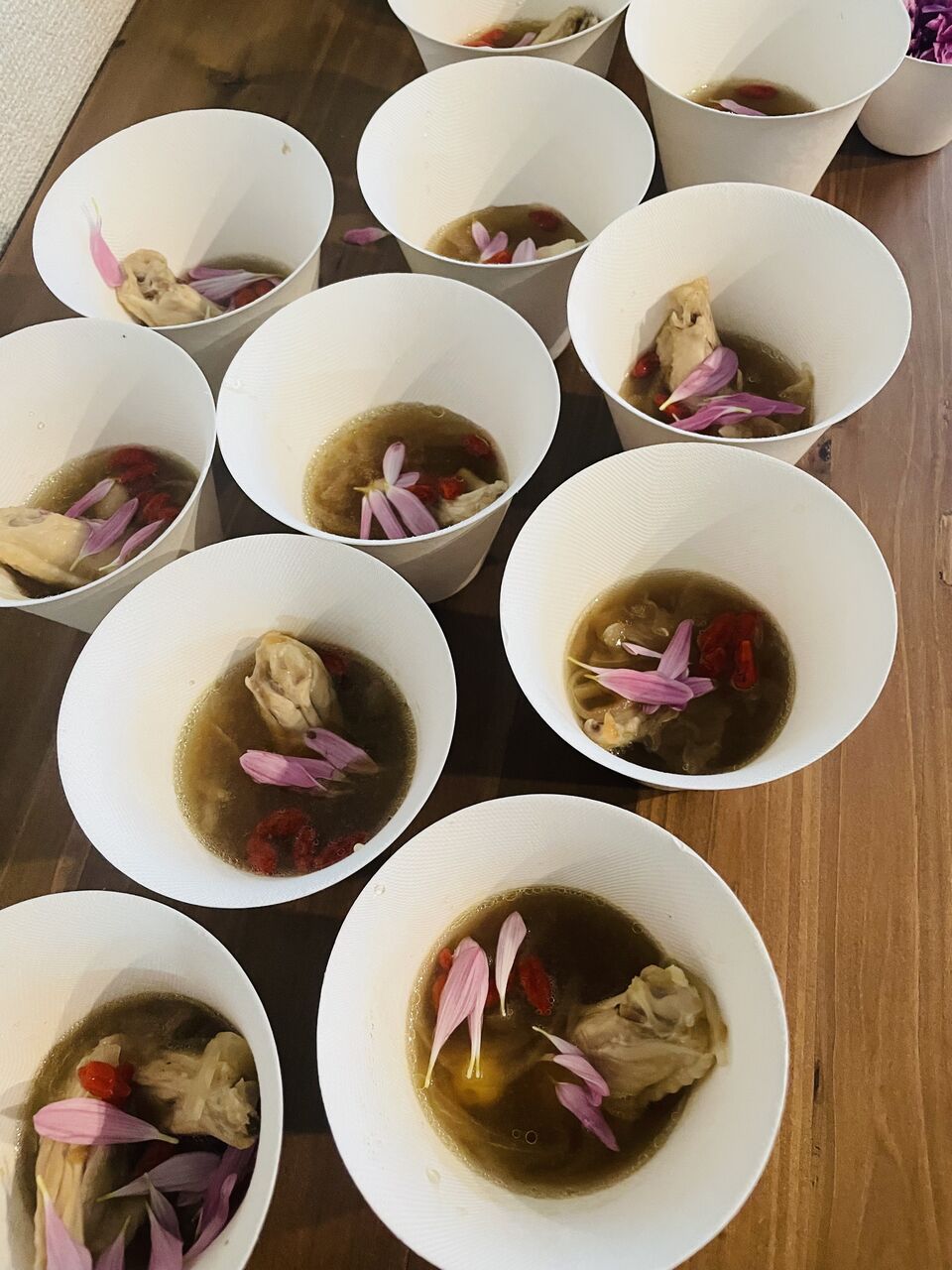 調理方法は、とても簡単なことでしたが、知識がなかったので、勉強になりました。 ボーンブロスの効果がさまざまなところに活かせれば良いと思います。 そして、食養という言葉がピッタリだと思いました。 薬膳の食材も加えることで、効能に広がりができ、こちらも素晴らしいですね。 ご一緒させていただく方々からも 学びが多く、対面の良さだと思います。 ありがとうございました。